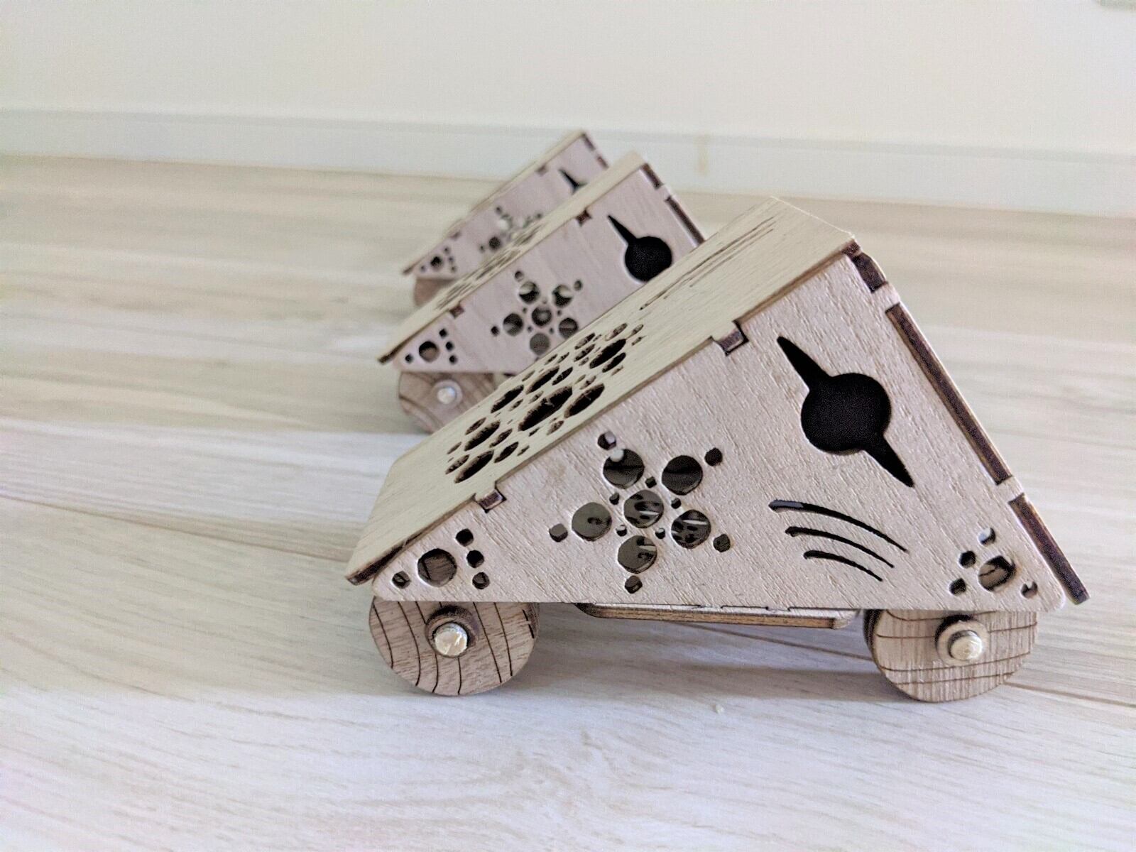 手触りの良い木で車のオブジェを作りました。